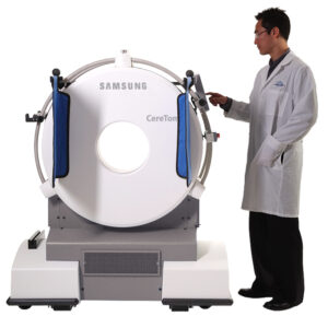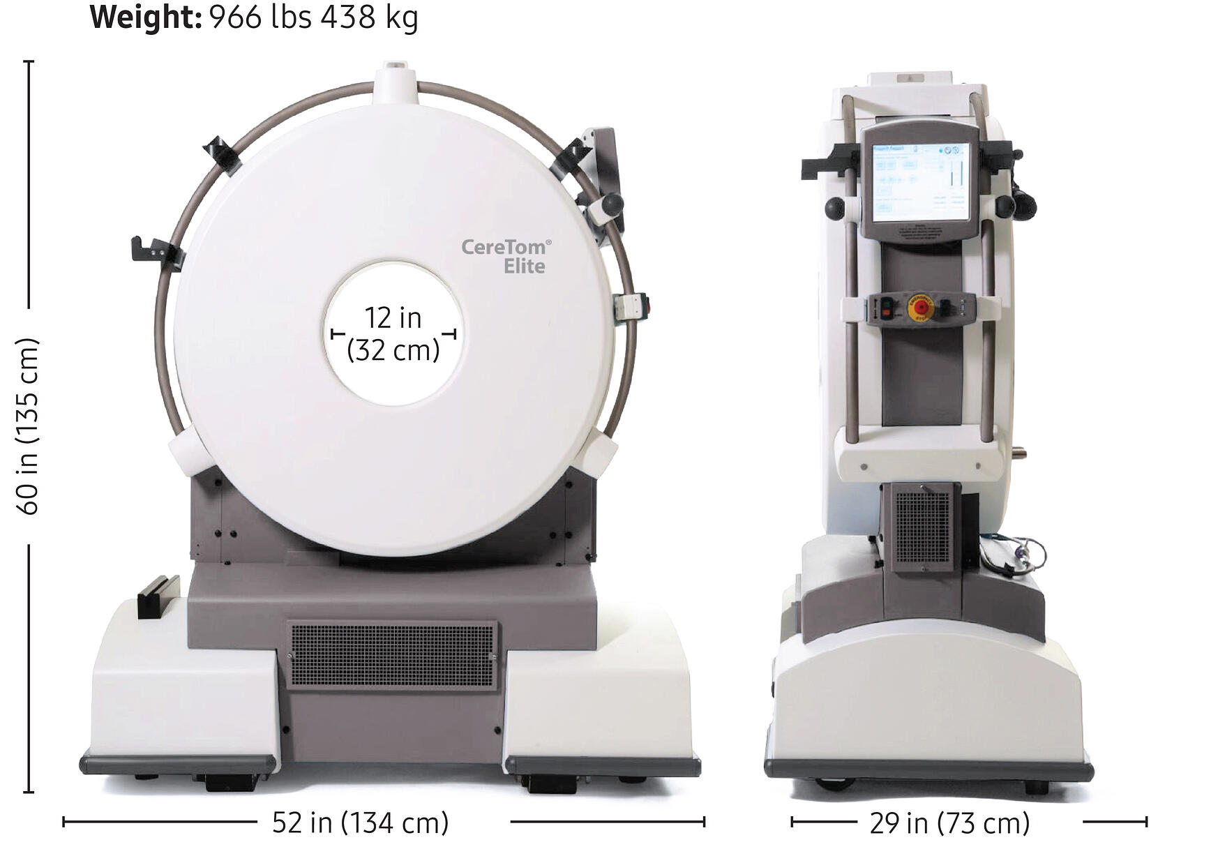 Es un tomógrafo multi-corte compacto, móvil, con alimentación a baterías y de línea, diseñado para escanear anatomía centrada en un área de 32 cm de diámetro. El CereTom® es móvil gracias a su dimensión y a su peso. Trasladable manualmente, o mediante su sistema asistido de manejo. El tomógrafo está autoblindado y posee tres cortinas plomadas, por lo que absorbe casi la totalidad de la radiación dispersa. Esto permite transportar el equipo y utilizarlo en cualquier área sin necesidad de tener un búnker. CereTom® cambia los paradigmas ya que ahora es el tomógrafo el que va al paciente. Brinda la misma calidad de imagen que los tomógrafos fijos. Imágenes de alta calidad aptas para diagnóstico.