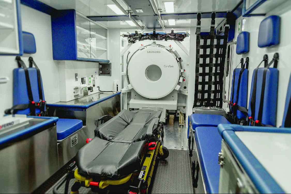La movilidad del CereTom permite obtener imágenes en tiempo real mientras el paciente es transportado, lo que agiliza el diagnóstico y permite que el equipo médico en el hospital esté preparado con un plan de acción antes de su llegada, reduciendo así el tiempo de respuesta y mejorando las posibilidades de un tratamiento exitoso.