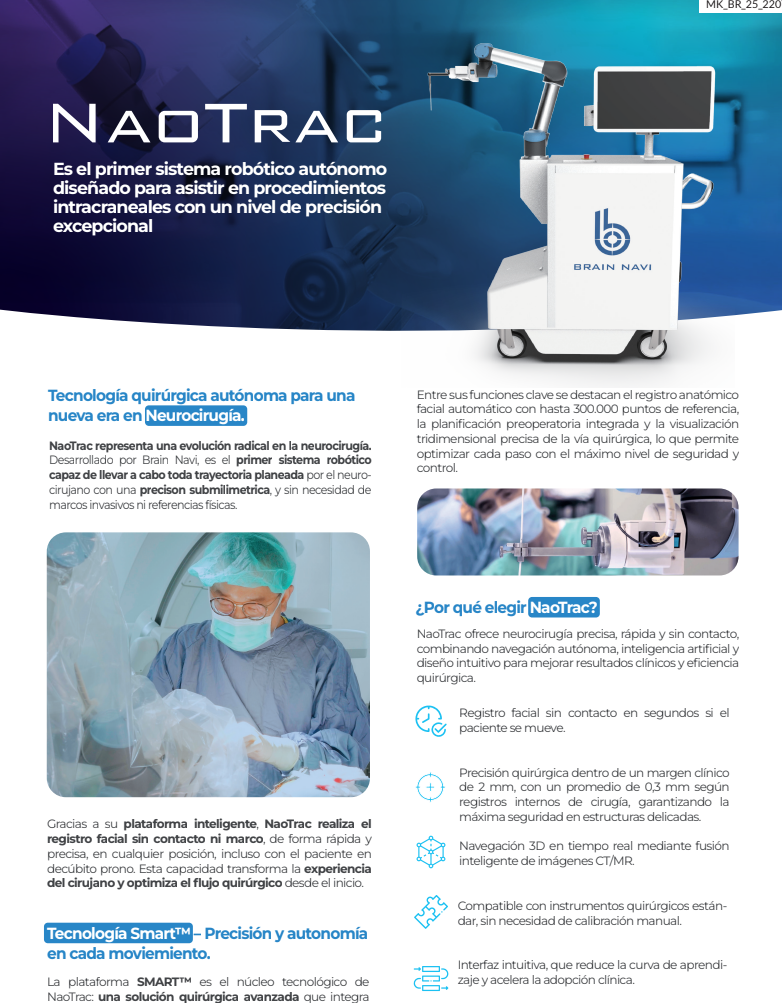 Como solución innovadora para la neurocirugía, NaoTrac se compromete a mejorar los resultados de recuperación de los pacientes y a brindar un apoyo quirúrgico
