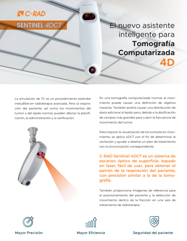 El sistema C-RAD Sentinel 4DCT es una herramienta óptica de superficie basada en láser que permite medir el patrón de respiración del paciente con precisión similar a la tomografía. También facilita la referencia de imágenes para el posicionamiento del paciente y la detección de movimientos durante el tratamiento en radioterapia.